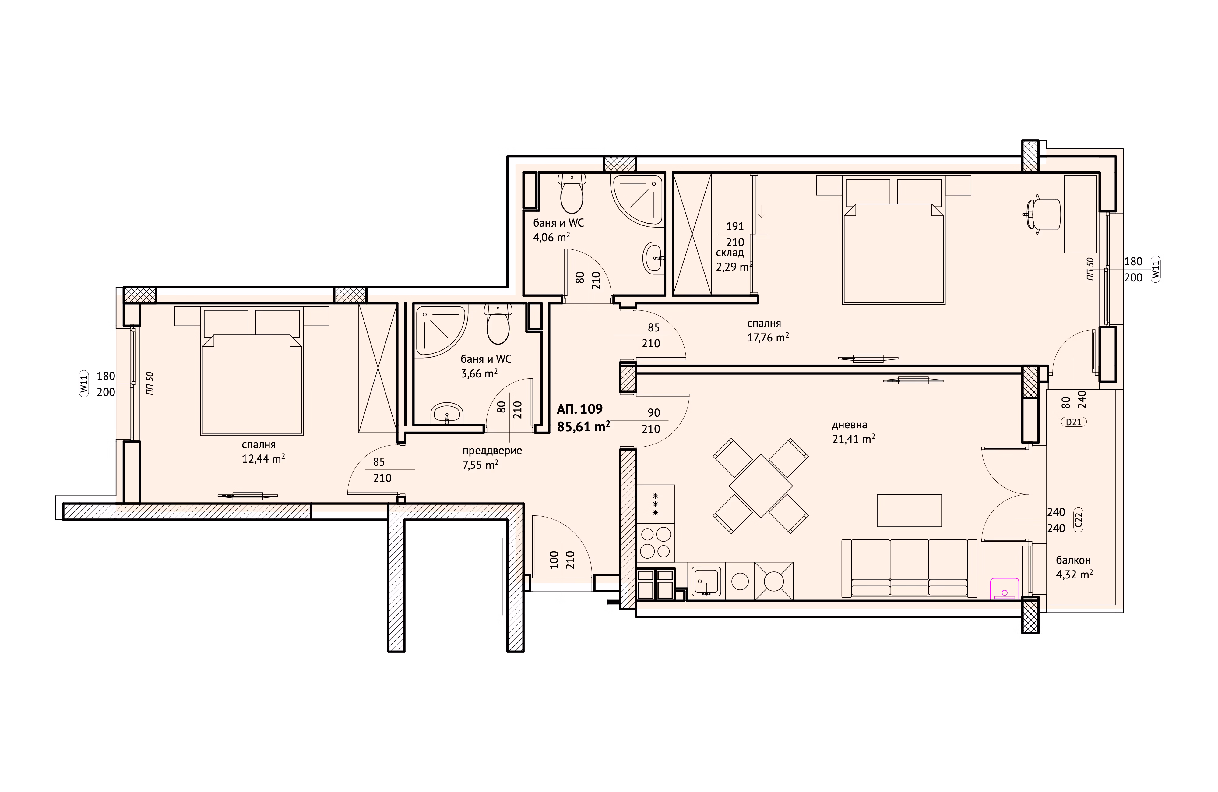 Начало / Алдира / Етаж 2 / Апартамент 109