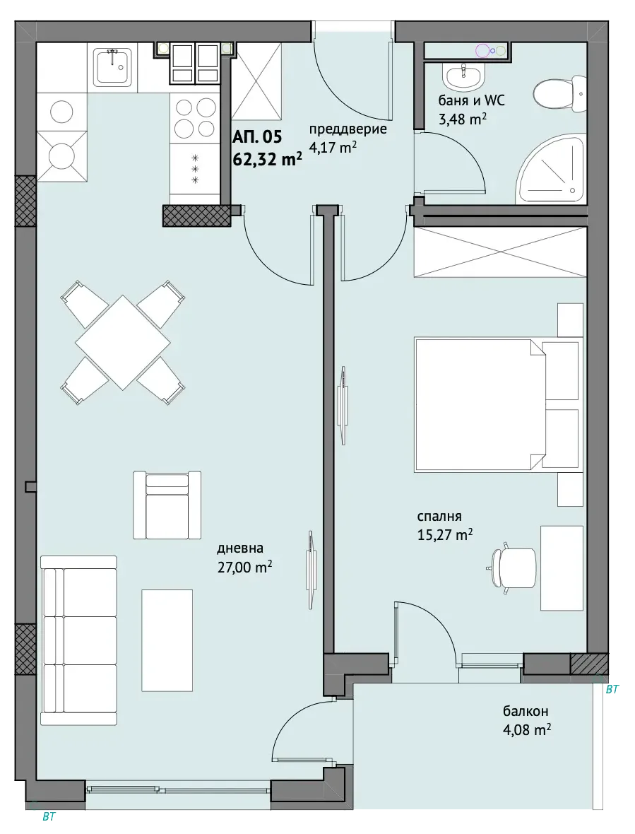Начало / Калиста / Етаж 1 / Апартамент 5