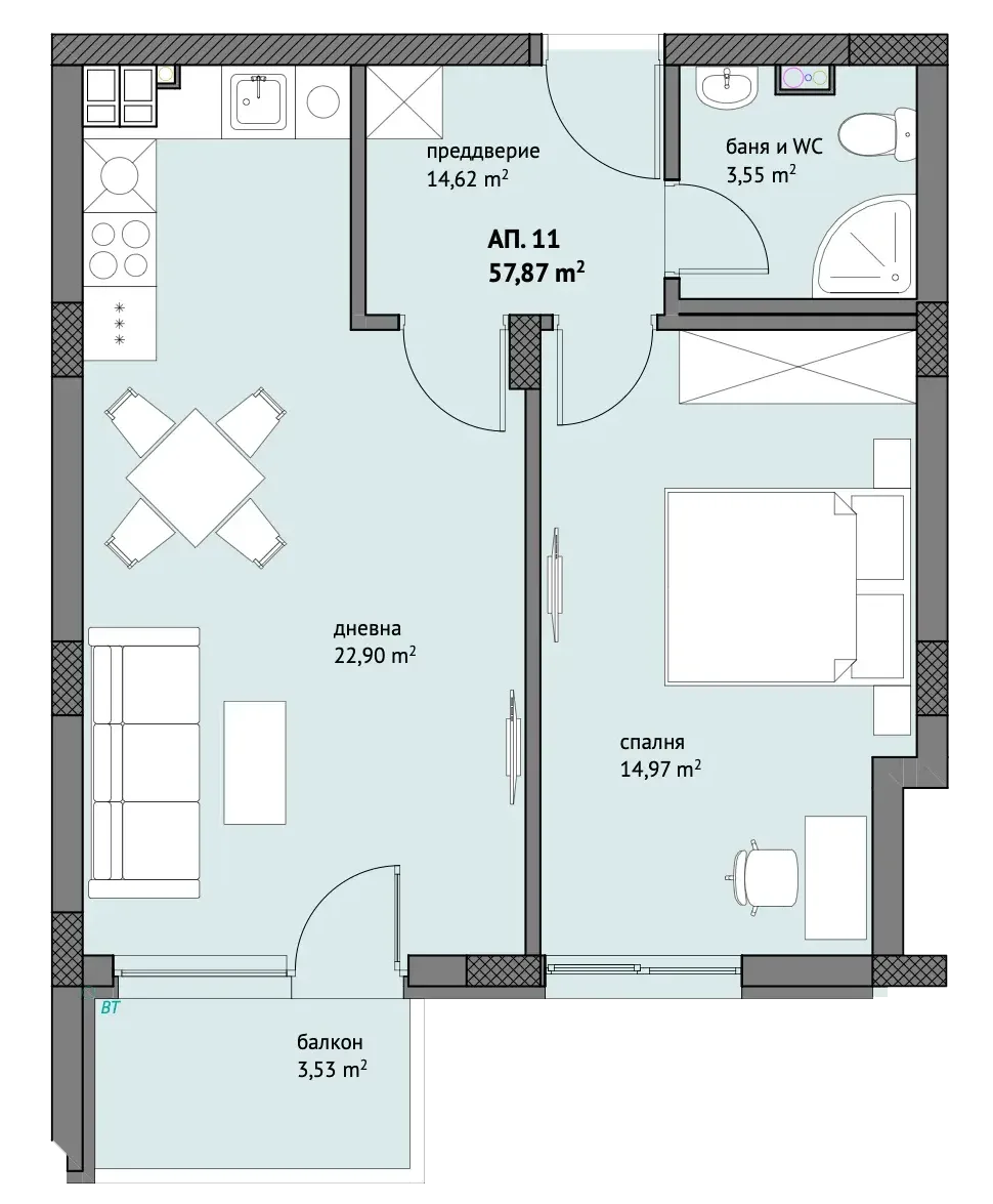 Начало / Калиста / Етаж 2 / Апартамент 11