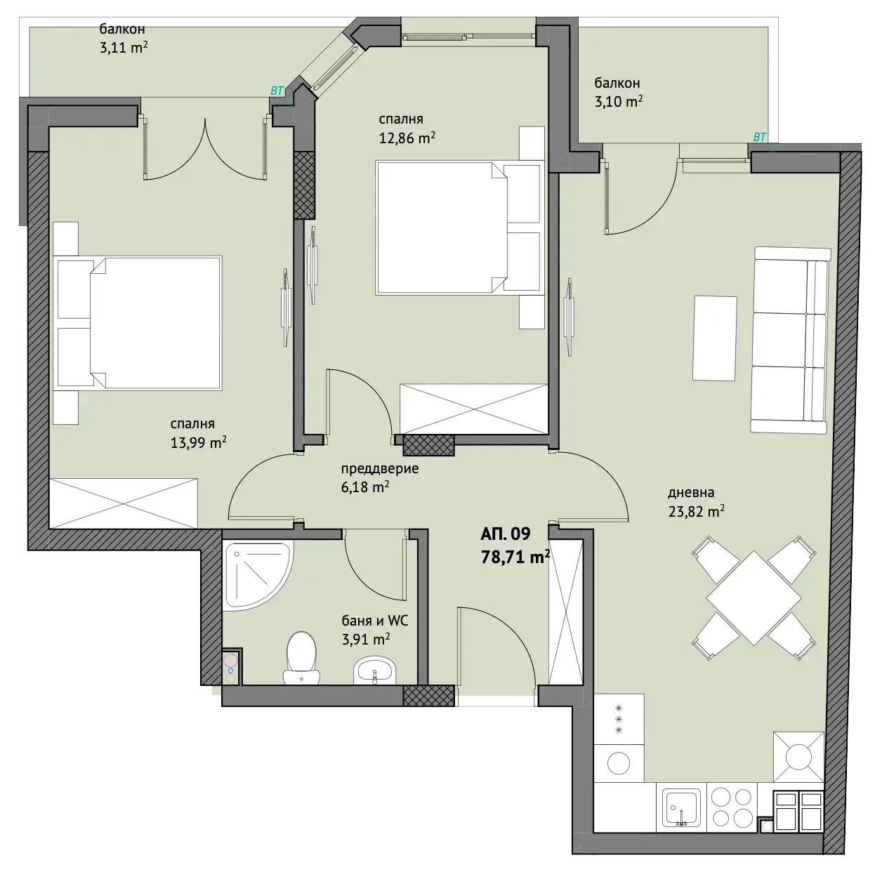 Начало / Калиста / Етаж 2 / Апартамент 9