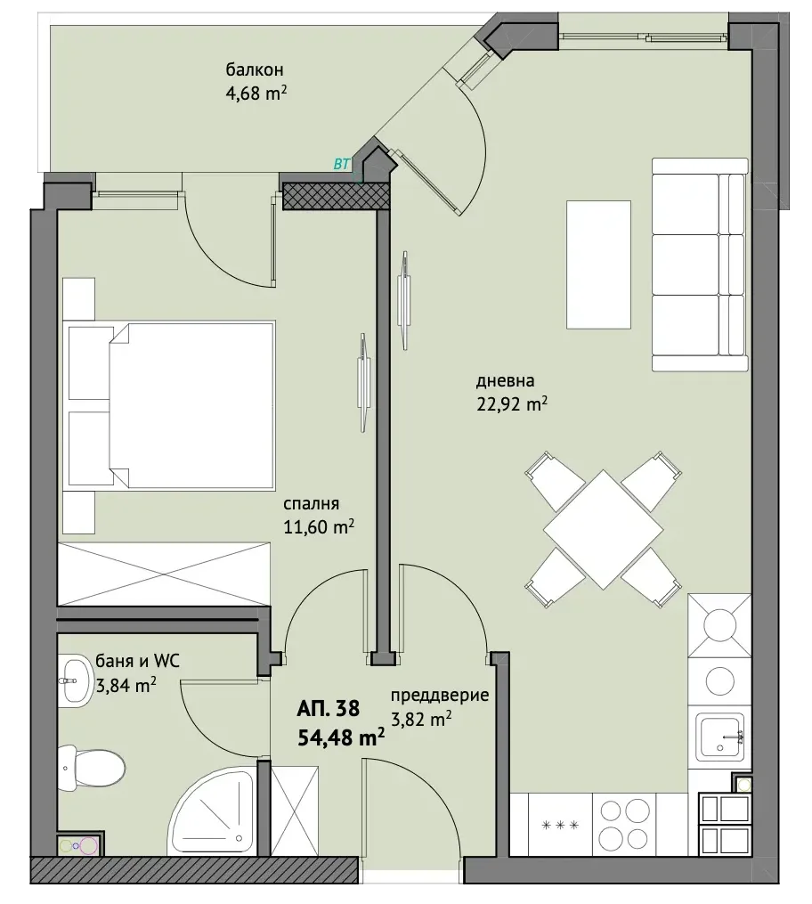 Начало / Калиста / Етаж 5 / Апартамент 38