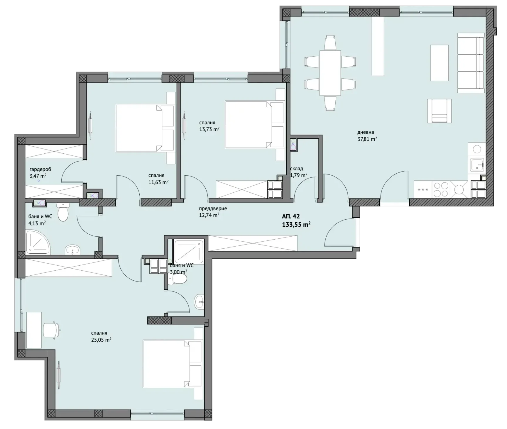 Начало / Калиста / Етаж 6 / Апартамент 42